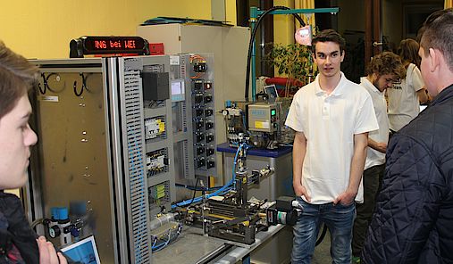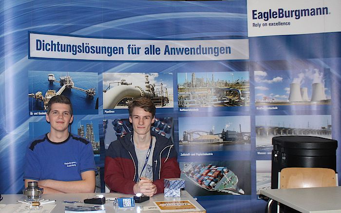 Der Dichtungshersteller Eagle Burgmann präsentiert sich in Vorträgen und an einem Stand in der Aula. Das Unternehmen bildet unter anderem Industriemechaniker aus. Eine entsprechende Lehre hat Ausbildungsleiter Peter Hertl selbst vor seinem Maschinenbaustudium gemacht. Für ihn steht fest: „Mit einer Lehre kann man nur alles richtig machen, weil danach alle Türen offen stehen.“
