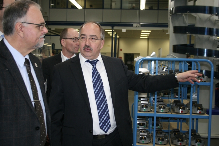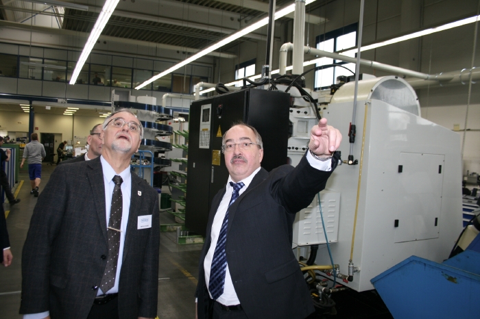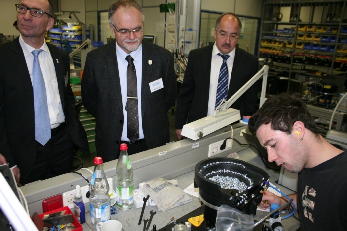 Wolfratshausen, 6.3.2014 – CSU-Bürgermeisterkandidat Peter Plößl und Wirtschaftsreferent Günther Eibl besuchten am Mittwochvormittag die Schraubautomatenfirma Weber am Hans-Urmiller-Ring. Geschäftsführer Karl Bujnowski und Marketing-Leiter Michael Steidl informierten über die Kompetenzen des Unternehmens. Beim anschließenden Werksrundgang erhielten die Gäste einen Praxiseinblick in die Produktion.