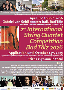 2. Internationaler Streichquartett-Wettbewerbs 2026 in Bad Tölz - Bewerbungszeitraum beginnt