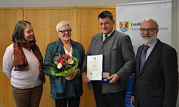 Mit der Ehrenmedaille des Landkreises in Silber zeichnete Landrat Anton Speer Monika Lang aus Oberammergau aus