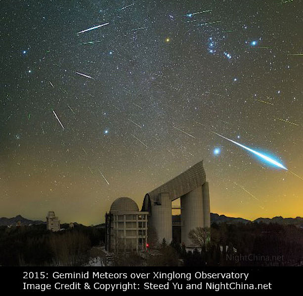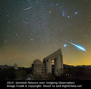 Königsdorf, 9.12.2019 - Die Geminiden sind der stärkste Meteorstrom des Jahres. Seine Aktivität hat sich in den letzten Jahrzehnten kontinuierlich erhöht und übertrifft inzwischen jene der Perseiden im August. In diesem Jahr ist das Maximum für die Nacht vom 14. auf 15. Dez. angekündigt. Fallraten von bis zu 120 Sternschnuppen pro Stunde werden erwartet. Aber auch in den Nächten zwischen dem 4. und 17. Dez. können Geminiden gesichtet werden, da in diesem Zeitraum die Erde die Staubspur des Asteroiden 3200 Phaethon durchquert.