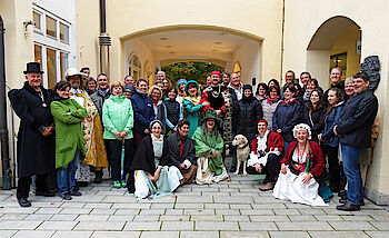 BU: Die Teilnehmer der Historischen Stadtführung vom Herbst 2017 mit einigen Darstellern der Loisachtaler Bauernbühne.