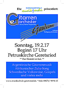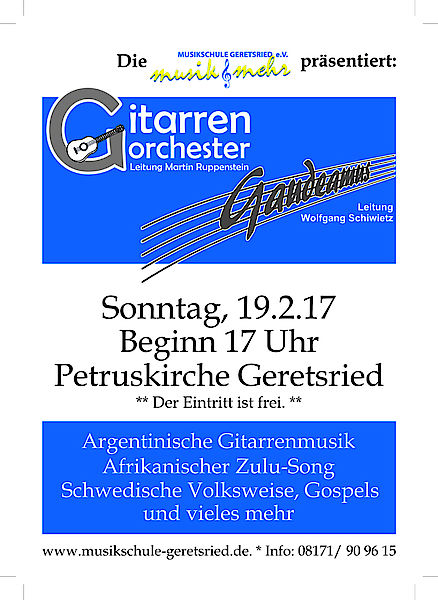 Am Sonntag, 19. Februar, findet in der Petruskirche Geretsried ein Konzert mit dem Gitarrenensemble von Martin Ruppenstein und dem Chor "Gaudeamus" unter Leitung von Wolfgang Schiwietz statt. Los geht es bereits um 17 Uhr, der Eintritt ist frei.