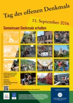 Mit dem Motto „Gemeinsam Denkmale erhalten“ steht der diesjährige Tag des offenen Denkmals ganz im Zeichen des gemeinschaftlichen Handels zum Schutze unseres baukulturellen Erbes. An jedem zweiten Sonntag im September können interessierte Besucherinnen und Besucher Denkmäler besichtigen, die sonst nicht für die Allgemeinheit zugänglich sind.